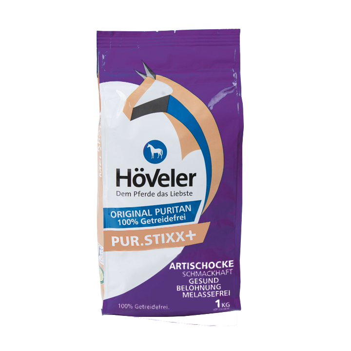 Täiendsööt hobustele. Teravilja, melassi ja tehislike lisaaineteta PUR.Stixx+piimohakas ja artišokk maiused on maitsev tasu sinu hobusele. Õrnalt kuivatatud kõrrelised ja maitsetaimed sisaldavad arvukalt elutähtsaid aineid mida hobune vajab. Kõrgkvaliteetne toormaterjal nagu linaseemned, õunapulber ja sigur toetavad tervislikku seedimist. Täiendavalt lisatud piimohakas ja artišokk on rahustava toimega. Ideaalne valik ka tundlikule hobusele.