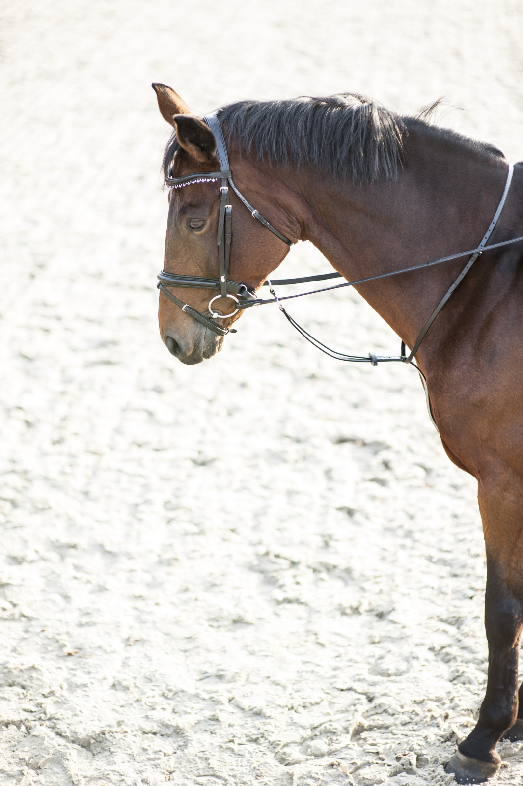 Kvaliteetsest nahast, roostevabast terasest detailidega klassikaline jooksev martingal. Värvus must.