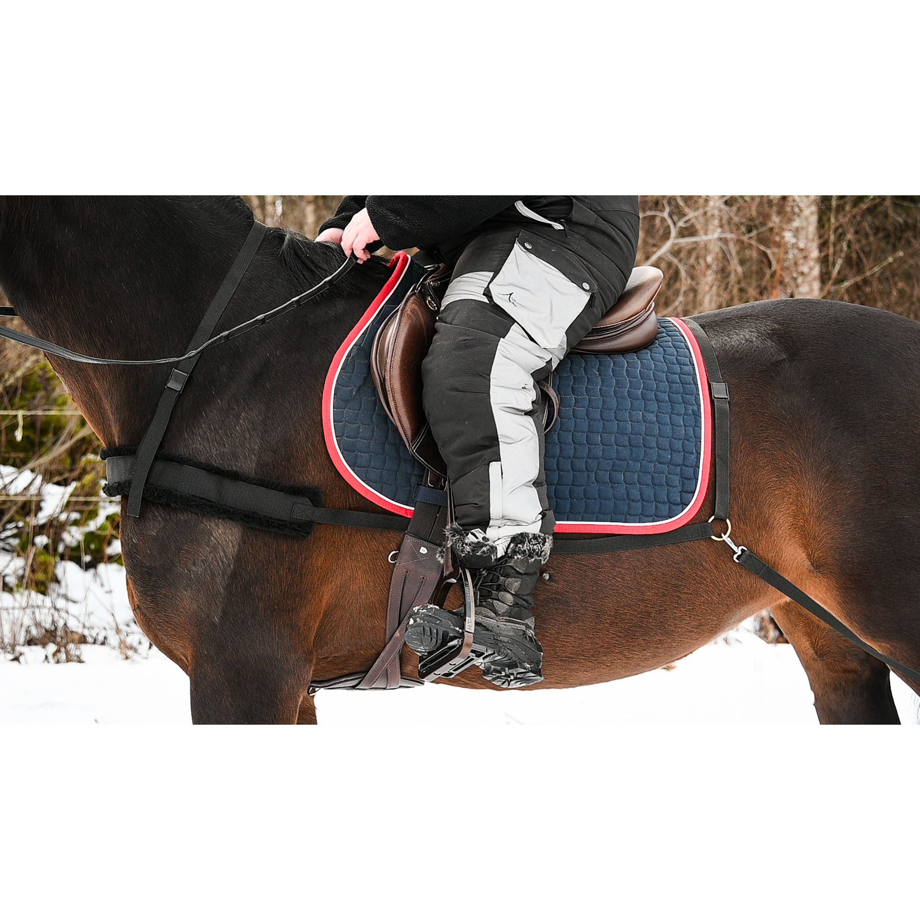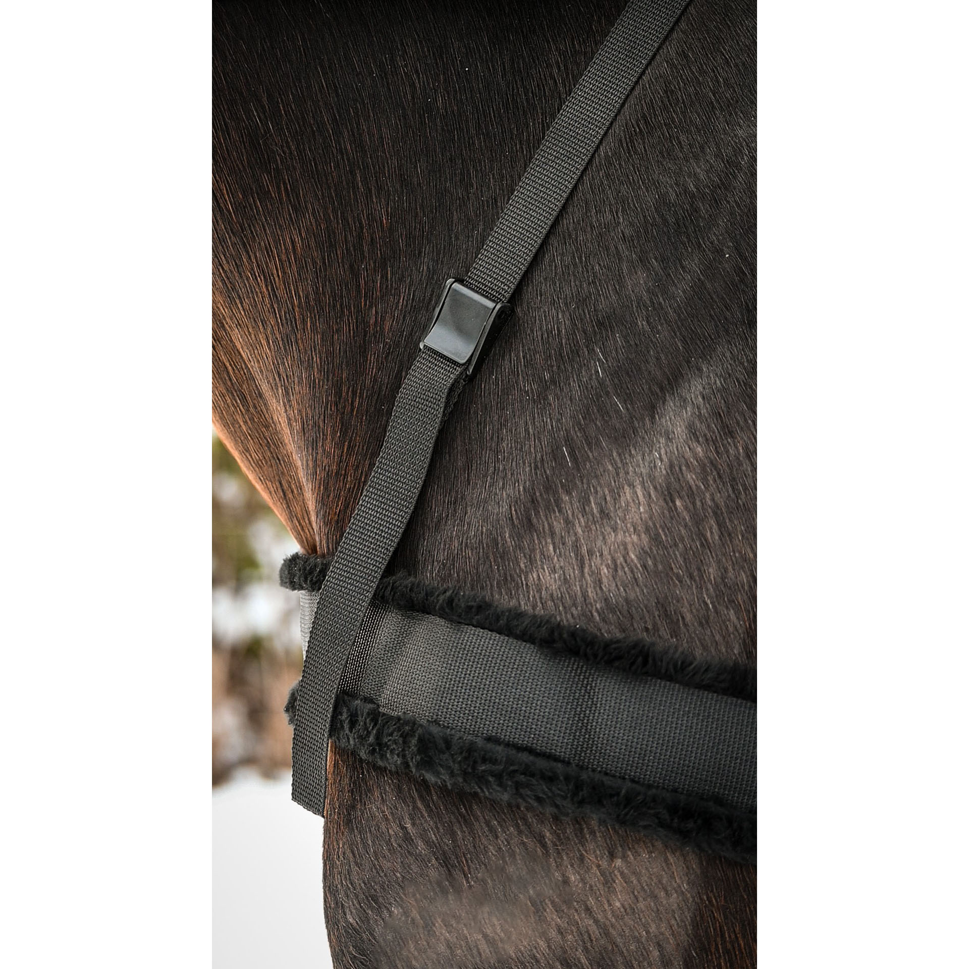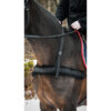Komplektis pehmendusega rinnarihm, ohjad ning käepide.