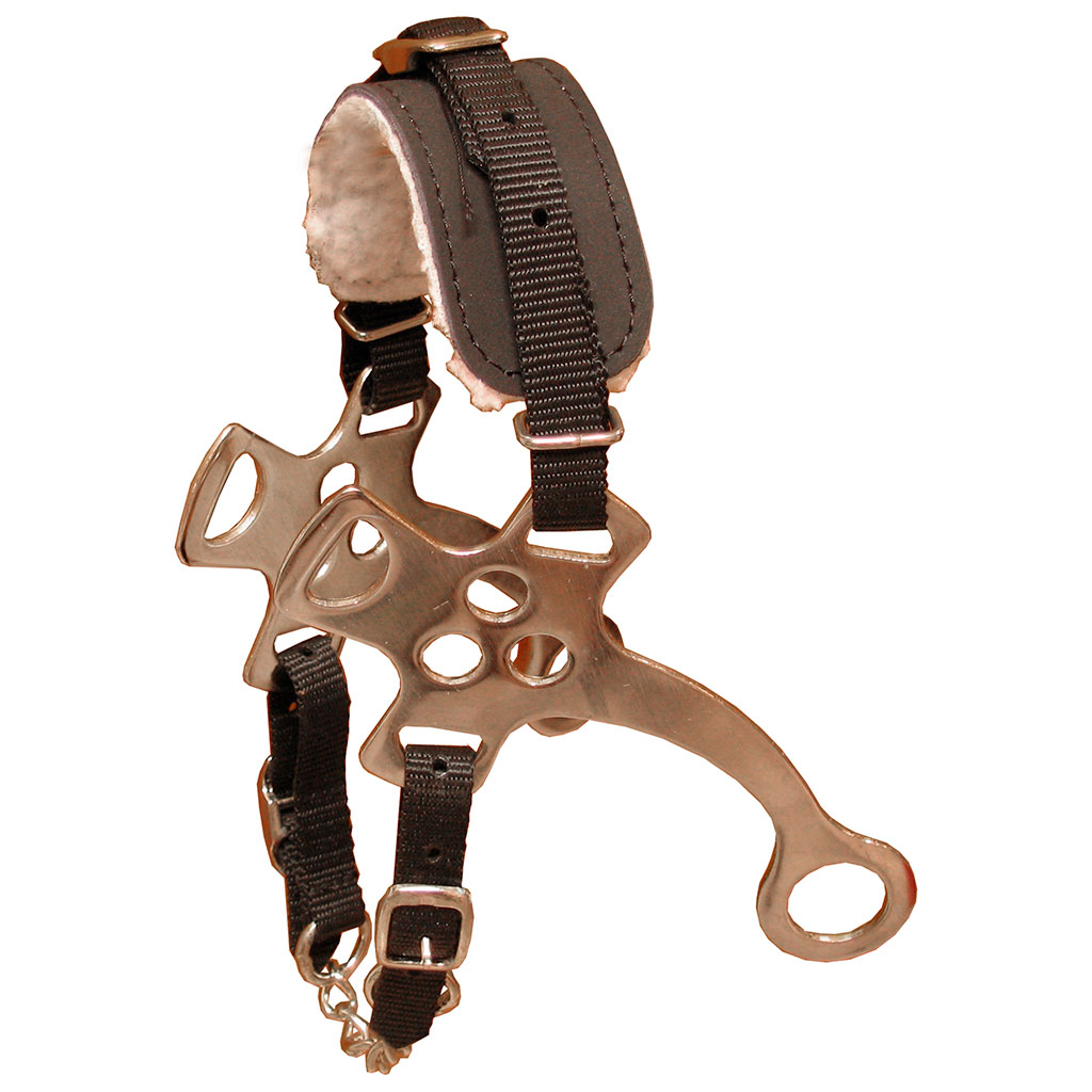 Kasutatakse kui mingil põhjusel ei saa hobusel suulisi suhu panna. Kroomitud metallosad ning nahaosa pehmendatud karvaga.