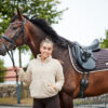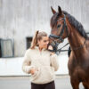 Polsterdatud inglise kapsliga valjad. Valgete kividega kaunistatud kumer otsmikurihm. Pehme polstriga kapsel tagab optimaalse sobivuse. Anatoomilise kujuga kaelaosa maksimaalse mugavuse tagamiseks. Kaasas 16 mm laiad kummiratsmed.