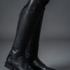 Klassikalised nahast kõrged ratsasaapad elastse vahetükiga piki tõmblukku. Dekoratiivne elastne paeltega jalaesiosa ajatu ja elegantse viimistluse jaoks. Tugev YKK tõmblukk sääre tagaküljel. Kannusehoidjad pahkluul, et hoida kannus kindlalt paigal.