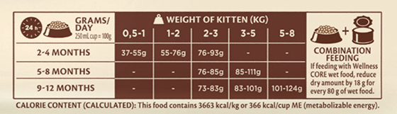 Wellness CORE Kitten toidab kõikide kassipoegade lihasööja vaimu ja annab neile parima alguse elule, kuid on loodud ka aitama kaasa karvapallide moodustumise vähendamisele tänu suurele kiudainekogusele.