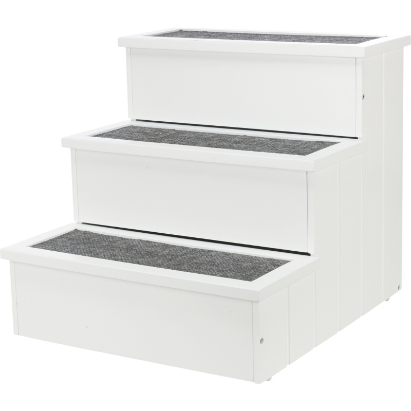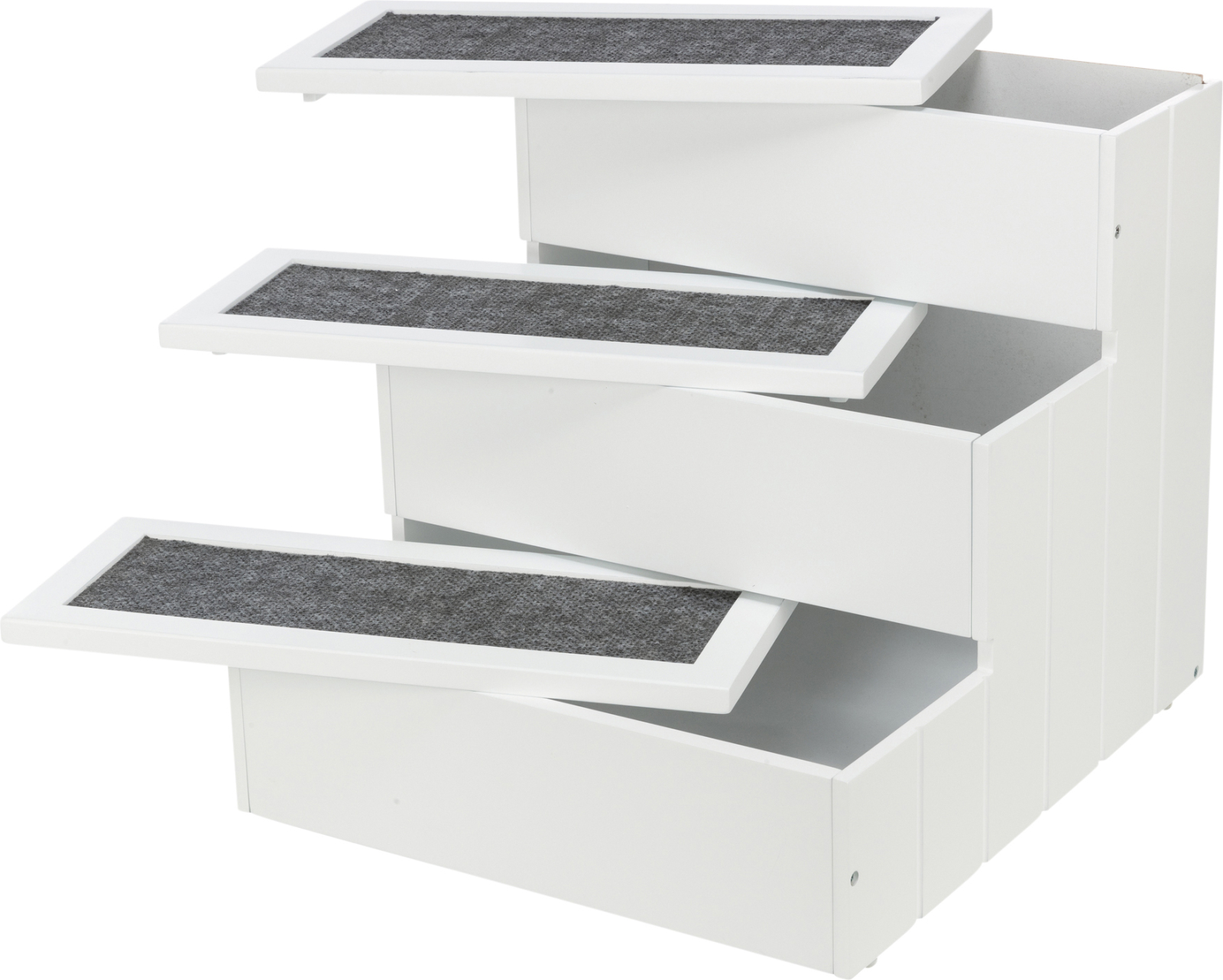 Praktiline ja stiilne aksessuaar teie koerale, mis on loodud pakkuma mugavat, turvalist ja hõlpsat juurdepääsu kõrgematele kohtadele. Elegantses valges värvitoonis, vastupidavast MDF-materjalist valmistatud trepp lisab igale kodukeskkonnale stiilse hõngu. Avatavas trepiastmes on panipaiga võimalus. Trepi kompaktne suurus muudab selle ideaalseks paigutamiseks elutuppa, magamistuppa või muudesse kohtadesse, kus teie koer peab jõudma kõrgematesse kohtadesse. Tugev konstruktsioon tagab usaldusväärse toe, samas kui libisemiskindel pind vähendab libisemis- või kukkumisohtu. Treppi on lihtne puhastada ja hooldada ning neid seda hõlpsasti teie kodukeskkonda integreerida.