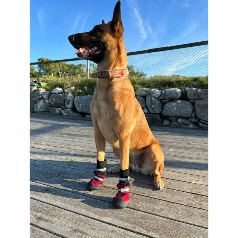 Ideaalne võimalus kaitsta koera käppasid kuuma pinnase, lume, jää ja soolatud teede eest. Vastupidava kummitallaga ning topelt takjakinnitusega. Komplektis 4 tk. Õige suuruse valimiseks aseta koera käpp paberile, joonista ümber selle kontuur ning mõõda jooniselt pikkus ning laius.