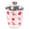 Valmistatud hügieenilisest roostevabast terasest, mis takistab bakterite tekkimist. Ümbritsetud plastikuga. Põhjal on eemaldatav kummirõngas, mis takistab libisemist ja kolisemist. Võib pesta nõudepesumasinas (eemalda enne kummirõngas). Ideaalne maiuste jms. säilitamiseks. Kõrgus 15 cm.