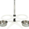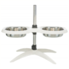 Kaks roostevabast terasest kaussi kood reguleeritava kõrgusega hoidjaga. Libisemiskindlad kummijalad. Kaussidel on läbipaistvad kummiääred, mis takistavad kolisemist. Kausse võib pesta nõudepesumasinas.