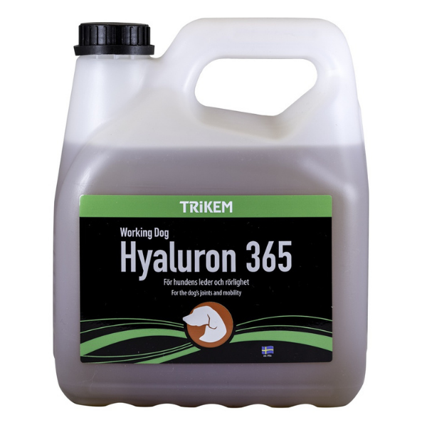 Hyaluron 365 on ainulaadne segu ainetest, mis kõik töötavad koera liigeste funktsiooni ja liikuvuse heaks. Hyaluron 365 sisaldab hüaluroonhapet, mis on kehaspetsiifiline aine, mis sisaldub koera sünoviaalvedelikus ja annab sellele lööke neelava võime. Hüaluroonhape juhib ka liigese toitumist. Hüaluroonhappe lisamise vajadus tekib koera treeningkoormusest ja vanusest. Töötaval ja aktiivsel koeral on liigeste suurenenud kulumine ning liigeste funktsiooni toetamiseks ja tarbetu kulumise vältimiseks võib ta vajada hüaluroonhappe lisandit. Vanuse kasvades endogeenne tootmine väheneb, mis põhjustab vanema koera liigeste jäikust ja kulumist.